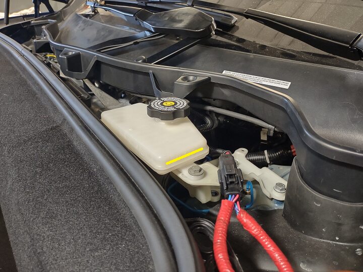 NoteIf the brake fluid level is above the Max line, remove the extra fluid.