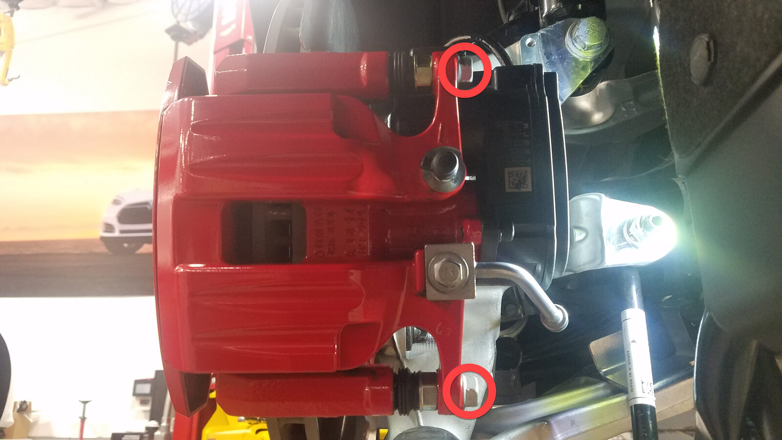 bolts (x2) that attach the caliper to the knucle.135 Nm (99.6 lbs-ft)