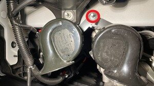 Remove the nut that attaches the horn assembly to the vehicle body, and then remove the horn assembly from the vehicle.