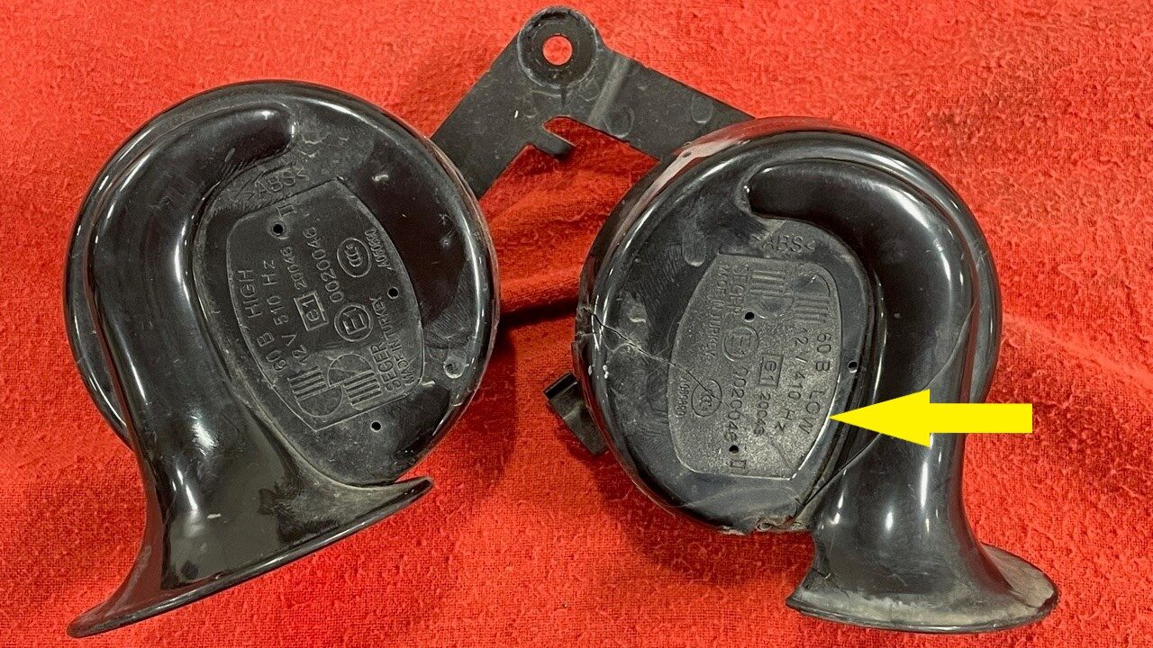 Remove the nut that attaches the low tone horn to the horn assembly bracket, and then remove the low tone horn from the bracket.