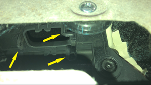 into the LH rear door assembly, and then secure the tabs (x3) that attach the switch to