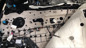 remove the LH rear door NVH pad to access the LH rear window switch.
