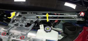 Note1x nut, 15mm, 32 Nm, Do not flex wiper arm to remove, Lower the hood slightly to fit wiper arm removal tool
