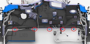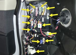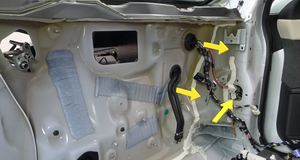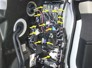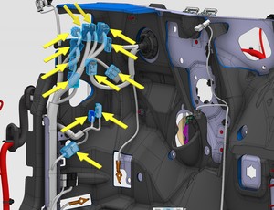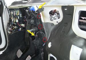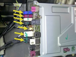 Note3x connectors, 1x clip, 6x tabs, Release 2x locking tab on airbag connector.