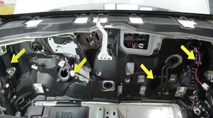 Note6x clips, 5x tabs, Insert tabs and slide bezel towards rear of vehicle, then secure clips.