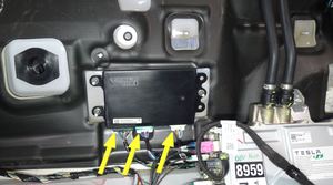 Note3x bolts, 10mm, 9 Nm, 1x connector, Secure connector before install, Rotate module rearward and up into place.
