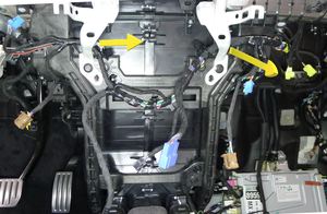 Note1x clip, 3x connectors, 6x tabs, Hook tabs before fully seating, Use caution not to damage the connector/harness, Support the knee air bag while connecting the connectors.