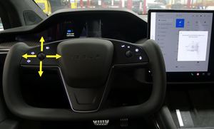 NoteVia UI > Controls > Steering , Use left steering wheel scroll wheel to adjust steering column.