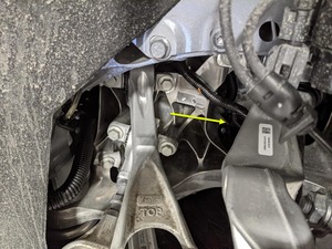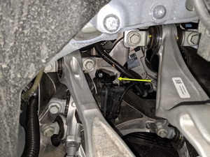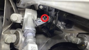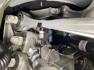Bolt that attaches the ride height sensor arm to the upper fore link |