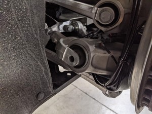 Note2025+ Model X knuckles have captive flag nuts for some joints. - Lower the support stand until the suspension is unladen, then remove it from the vehicle.