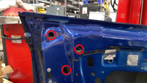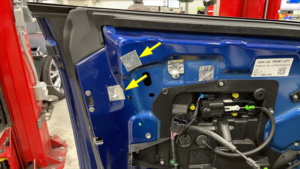 to the door assembly, and then install new butyl patches (x2) that cover the fastener
