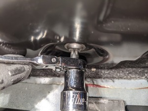 NoteThe bottom two bolts require improvising an 8 mm ratchet box-end wrench to turn the T40 socket.