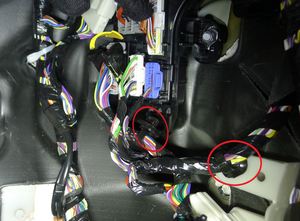 NotePull down the spring loaded locks simultaneously to release the airbag electrical connectors.