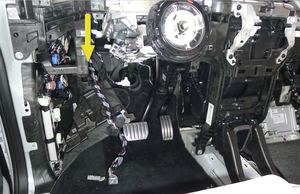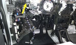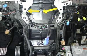 NoteManeuver the RH side of the harness underneath the instrument panel cowl link down into passenger footwell, and then maneuver the LH side of the harness up and over the steering column down into the driver footwell.