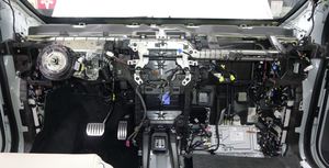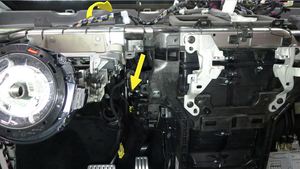 - Remove the driver knee airbag. However, do not remove the components from the knee airbag assembly after the assembly has been removed from the instrument panel. See GUID-AD2D20F2-35B3-4022-84DE-B2224CA3E415.html.