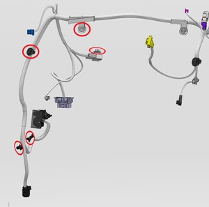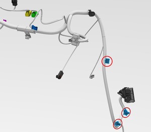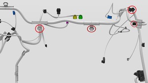 instrument panel electrical harness at the LH and RH touchscreen brackets.