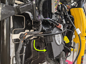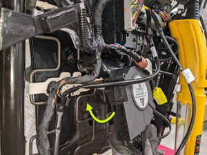 Fasten the clip that attaches the driver seat harness to the seat frame