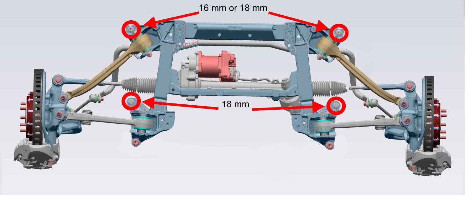 - Front bolts - 16 mm or 18 mm heads (M12 1.75x75 bolt (1063242-00-B) and M12x24x2.5 washer (1103852-00-A) or just M12-1.75x115 bolt (1608611-00-C ))