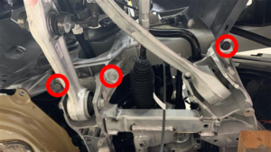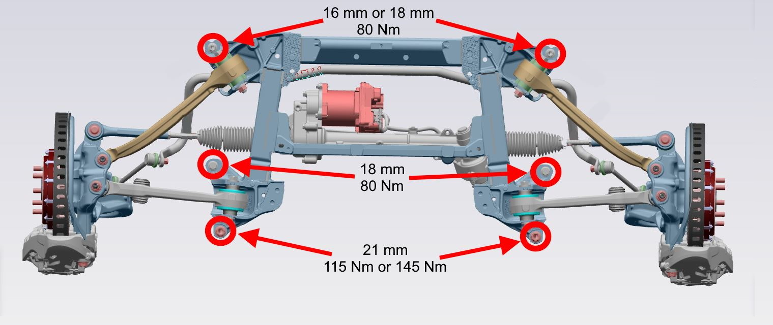 rear bolts (x6) of the front subframe, but do not remove the bolts at this time.