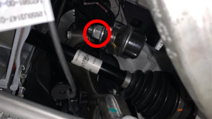 NoteTo prevent ball joint damage, use a 5mm hex wrench to prevent the LH link ball joint stud from turning while removing the nut. -