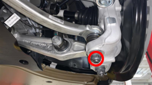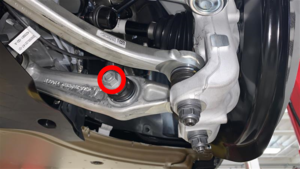 front knuckle, and then install a new nyloc nut to attach the fore link to the