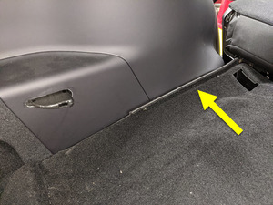 NoteSeat the rear edge first, and then seat the carpet over the harpoon brackets and tuck under the trunk side trim.