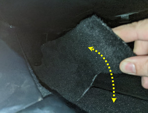 Peel up the outer corners of the 2nd row rear carpet to guide it into position, and