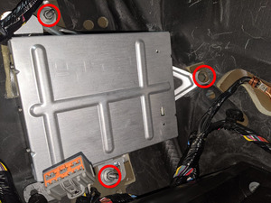 Remove the nuts (x2) that attach the external audio amplifier to the vehicle, and
