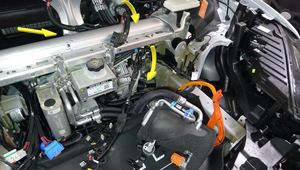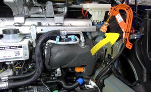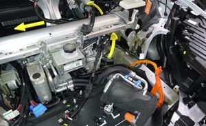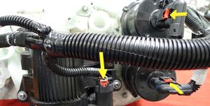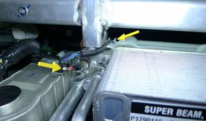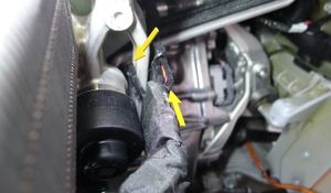 Remove clips securing heat pump harness at the bottom of coolant bottle