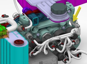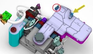 Note1x locking electrical connector, Secure harness to supermanifold, Engage locking tab