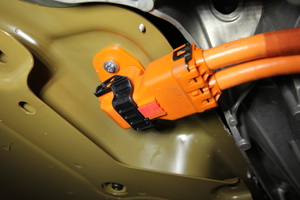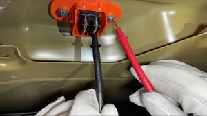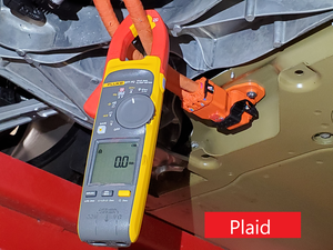 NoteVerify meter is zeroed out before performing measurement, Measure single cable. Verify ammeter is installed in correct direction. If current > 0.5A do not proceed with disconnecting HV connector. In this case, start vehicle electrical isolation again to make sure that all was properly shut down. If current < 0.5A, Ok to disconnect and check voltage at HV plug on the battery side.