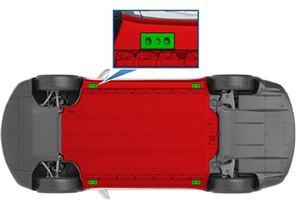 NotePrepare to raise vehicle, Set air suspension to "Jack Mode", Position lift arm pads on vehicle jack pads, DO NOT position the lift arm pads under the battery or side rails, as shown in red