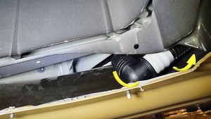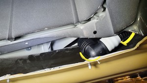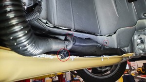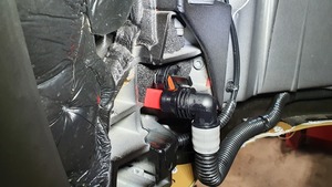 Disconnect RH sill to underhood hose from FDU heat exchanger junction hose