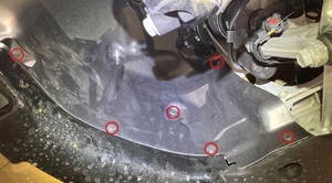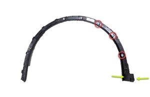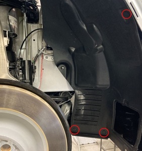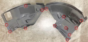 Note2x push-nuts, 11x RVT push-pull, insert LH side tab at top of wheel liner into RH side slot, ensure proper positioning of bottom edge of wheel liner