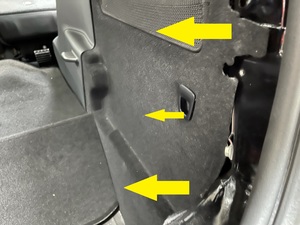 the push clips (x4) that attach the RH trunk side trim to the vehicle, and then remove