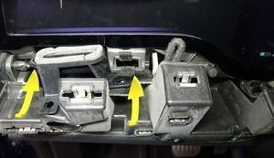 Note2x connectors, 1x clip, Slide display rearward outwards from IP bracket and support during connector release