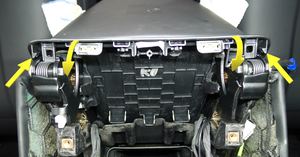 - Remove the center console air wave assembly. See Air Wave Assembly - Center Console (Remove and Replace).