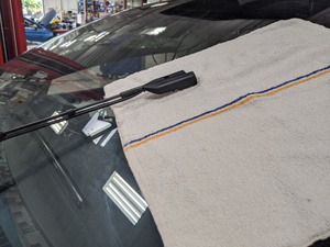 NotePlace a towel or shop rag under the wiper arm to prevent scratches on the windshield.