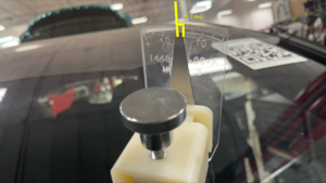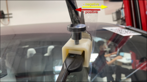 NoteTighten the thumb screw to secure the tool to the LH wiper arm. Ensure the thumb screw is not overtightened as marring will occur to wiper arm, and that both plastic points are resting on the windshield.TIpUse of the following tool(s) is recommended: