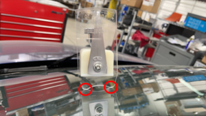 NoteTighten the thumb screw to secure the tool to the RH wiper arm. Ensure the thumb screw is not overtightened as marring will occur to wiper arm, and that both plastic points are resting on the windshield.TIpUse of the following tool(s) is recommended: