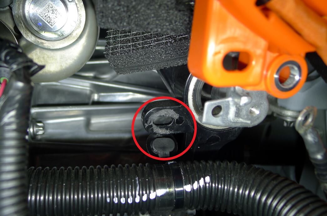 A/C compressor HV harness bracket to the A/C compressor.