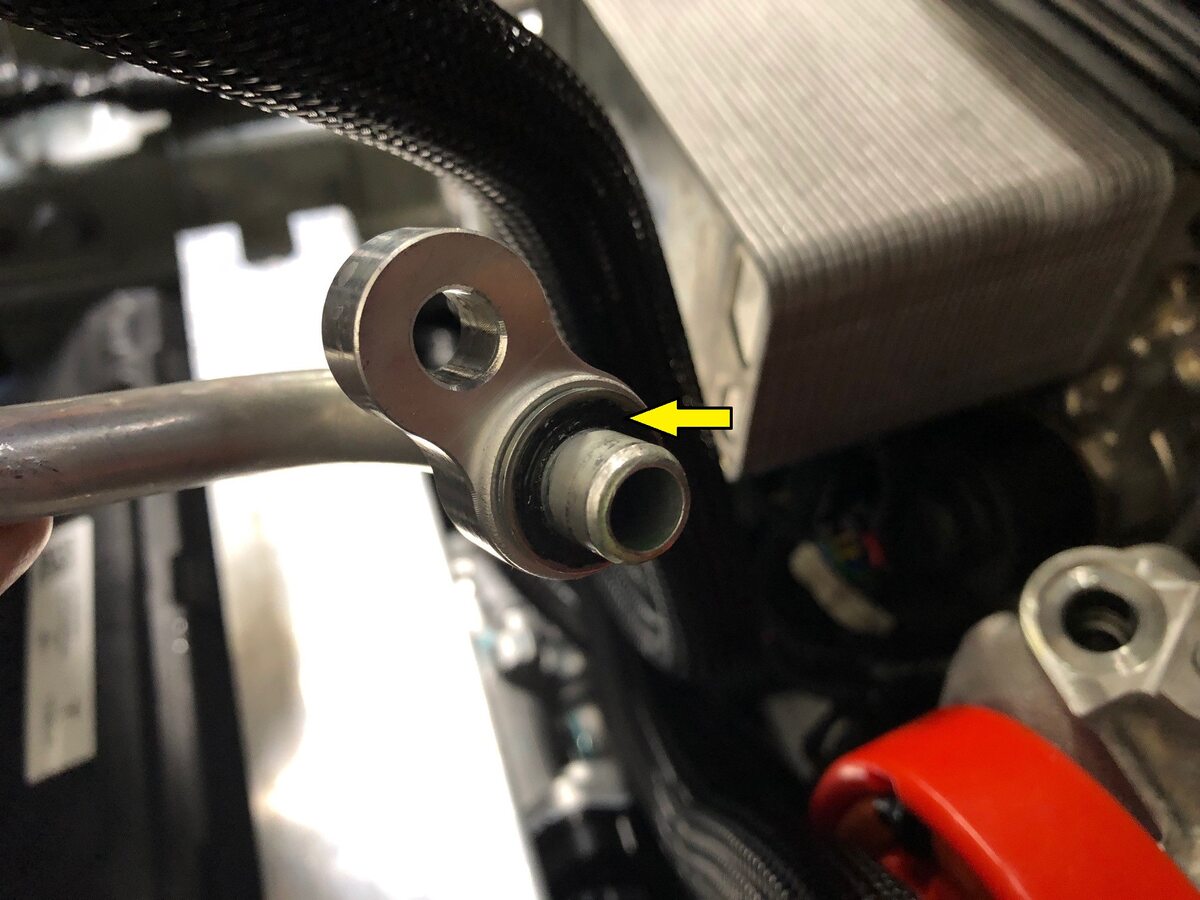 coolant hose to the A/C compressor bracket.