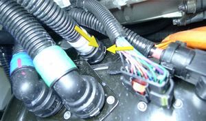 powertrain supply hose from the HV battery, then immediately plug both fittings.