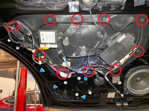 actuator assembly into the LH rear door, and then install the nuts (x3) that attach the