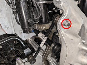 secure the assembly by inserting the bolt that attaches the knuckle to the front upper