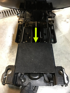 Release the plastic guides (x2) that attach the magic carpet to the LH 2nd row seat