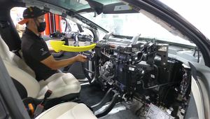 - Remove the driver knee airbag. However, do not remove the components from the knee airbag assembly after the assembly has been removed from the instrument panel. See GUID-AD2D20F2-35B3-4022-84DE-B2224CA3E415.html.