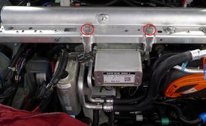 Note3x bolts, 10mm, 9 Nm, 1x connector, Secure connector before install, Rotate module rearward and up into place