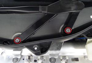 Apply Loctite 222 onto front aero shield bolts and install fasteners securing front aero shield to vehicle