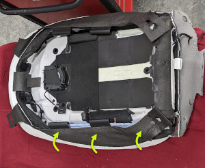 - With assistance, place the driver seat on a protected surface so that the underside of the seat can be accessed.